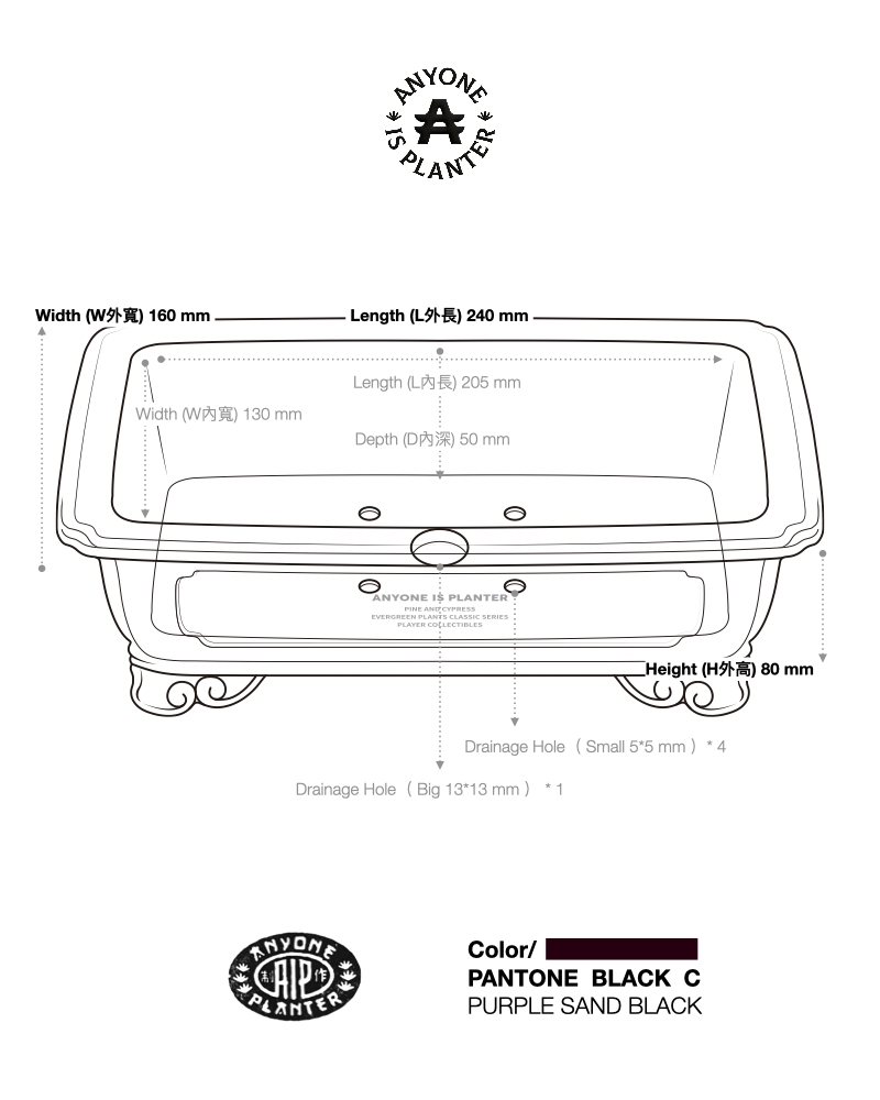 【 風格樣式 】 雲腳大長方 曲幹式 小型 【 盆栽尺寸 】 盆栽:H32高cm, W寬32cm, D深49cm(含盆)為整體尺寸參考值 盆器:H高8cm, W寬16cm, H長24cm (盆內:H高5cm, W寬13cm, H長20.5cm) 樹高:24cm 幹粗直徑:2.6cm(樹幹高與粗度會隨著時間與營養變化而改變) 【 全台黑貓配送 】 由盆栽產地交付黑貓宅配統一出貨 【 特別聲明 】 由於真柏培育產區擴建中,所有盆景進入雨季養護階段,園區工作人員有限, 短期無法出貨,預購型商品出貨時間,請詳閱以下內文。 【 預購須知 】 1. 如同時購買『預購商品』與『現貨商品』,請分兩次結帳。 2. 如購物車內有『預購商品』,『現貨商品』將與『預購商品』一同出貨。 3.『預購商品』購買前,請詳購物前須知,如有疑問請洽IG官方小編。 【 限量精品 】 每一盆都是匠心獨具的藝術品,台灣真柏成長於有限的年產量下,每年僅能提供四種盆型,每盆僅約25至30盆。 每盆盆景,每分每秒都在成長,給予適當的照顧與補給所需的營養,在每年的每個季節,都可以去感受這在四季的樂趣,所販售的盆栽皆為素材也為成品,一盆好的盆景,需經過年復一年的雕塑與培育,來達到各種仿造自然神態的美,心與自然合一的境界。 - 雕塑鋁線 - 是師傅施作時固定植物生長方式方向的『暫時性固定』,養植時如發現鋁線正在被樹皮包覆,即可拆除,也可重新施作,靠自己的巧手與意境來重新雕塑樹形。 - 真柏樹幹粗度 - 不能完全代表年份,只能作為年份的參考值,每盆盆栽因表達意境與創作美感不同,選取的素材年份成長方式不同,導致幹的粗細略有不同。 - 盆栽 - 因拍攝到上架與出貨季節不同,盆栽葉茂長短也會不同,出貨前,會統一整理盆栽葉茂姿態。 - 葉茂 - 由於盆景拍攝時期正值雕塑期,剛整理完形體與葉茂,實品會比商品照片其葉茂更來的茂密。 【 Anyone is Planter 修剪服務 】 我們提供一項特殊服務:為了讓您擁有最佳的體驗,在購買後的一年內,每盆AIP盆栽可以免費享受回園區修剪一次的服務,這將確保您的真柏盆景保持美麗和健康,並持久地散發著其迷人的風采。 “完成訂單後:系統將於12小時內啟用一年的保固服務,可至會員個人頁面查詢。” 〖 請注意!此服務不包含運費 〗 但我們將以黑貓宅配收貨方式為您提供寄送服務,讓台灣真柏的永恆之美為您的生活增添綠意和和諧。 【 養護培育 】 真柏小品盆栽還需要定期修剪和整形,以維持其美麗的形態和尺寸。定期除蟲和施肥也是保持其健康和生長的關鍵。若您有興趣,不妨試著種植一株真柏小品,體驗自然與生命的美妙。 而它們需要經過半年的精心養護和培育,以穩定品質,讓每一盆都展現出最完美的姿態,深知這些盆景得來不易,因此,每一盆都以極高的謹慎度製作。 從精心挑選材料到細緻雕琢,將匠人心血注入其中,使其成為一件獨特珍貴的藝術品,擁有這獨一無二的藝術寶藏,感受大自然的神奇力量與百年文化。 團隊每月定期前往產區拍攝,植物為成長階段商品,因季節濕度與成長階段有所不同,而導致每盆植物光影與葉色會些微不同,屬於『正常現象』每只盆栽在拍攝前會進行,盆器擦拭處理與葉茂修整,我們盡可能呈現最自然的樣貌與葉茂,但我們無法掌握自然的美,盆栽土壤上方的水草,也會因為氣候濕度與日曬程度不同,也會造成顏色與濕潤度的不同,皆屬『自然現象』,請放心選購獨一無二的自然藝術品。 【 真柏知識 】 台灣真柏是台灣的原生植物,以其矮小的生長形態和綠色的葉片,在園藝上得到了廣泛的應用。台灣真柏小品盆栽種植已經有數百年的歷史,是一種經典的園藝品種。真柏小品盆栽有著很高的觀賞性和美感,其精美的姿態和多樣化的造型,能夠很好地裝點室內和室外的環境。 除此之外,真柏的綠色葉片和柔軟的質感,更能為人們帶來一種療癒和放鬆的效果。要種植出一株健康美麗的真柏小品,需要特別注意其生長環境和管理。真柏偏愛溫暖潮濕的環境,生長在陰涼潮濕通風有陽光的環境中,可以達到最好的生長效果。在盆栽種植中,非常適合各階段玩家,選擇適當的土壤和肥料也很重要,以確保植株營養均衡,健康成長。 【 盆器說明 】 特製專屬顏色PANTONE BLACK C紫砂黑, 古法手製窯燒,每只盆器經受打磨及高溫,窯燒製過:程使『黑』獨特安靜,炙淬而生 盆底商標工匠手工拓製,獨特印記僅此唯一 底部多鋁線孔,專為『盆景盆器』設計而生-限量盆器,釋出99只製作紫砂盆器是一門古老的手工藝, 需要經過多個精細的步驟才能完成。首先,工匠們會仔細地篩選出適合製作的原料,包括紫砂泥、白砂、紅砂和石英砂等。接著,工匠將這些原料和適量的水混合,經過攪拌和篩網處理後,形成均勻的泥狀物質。然後,工匠們開始手工塑形,打造出不同形狀的盆器,如壺、罐、盆等。在這個過程中,他們需要不斷調整和修整,以保證盆器的美觀和使用性能。最後,經過高溫燒製和上釉處理,製作完成的紫砂盆器光澤度高,材質堅固耐用。整個製作過程需要工匠們的耐心和技藝,才能製作出高品質的紫砂盆器。 【 注意事項 】 盆景屬於藝術商品,也需投入養護,請謹慎考量自身條件, 每盆都手工培育仿造自然神韻,耗時完成,數量有限流通較快,每件作品只有一盆。 A small, custom-made exclusive color of PANTONE BLACK C Zisha black, made by traditional handmade kiln firing. Each pottery has undergone polishing and high temperature firing, which makes the "black" uniqu