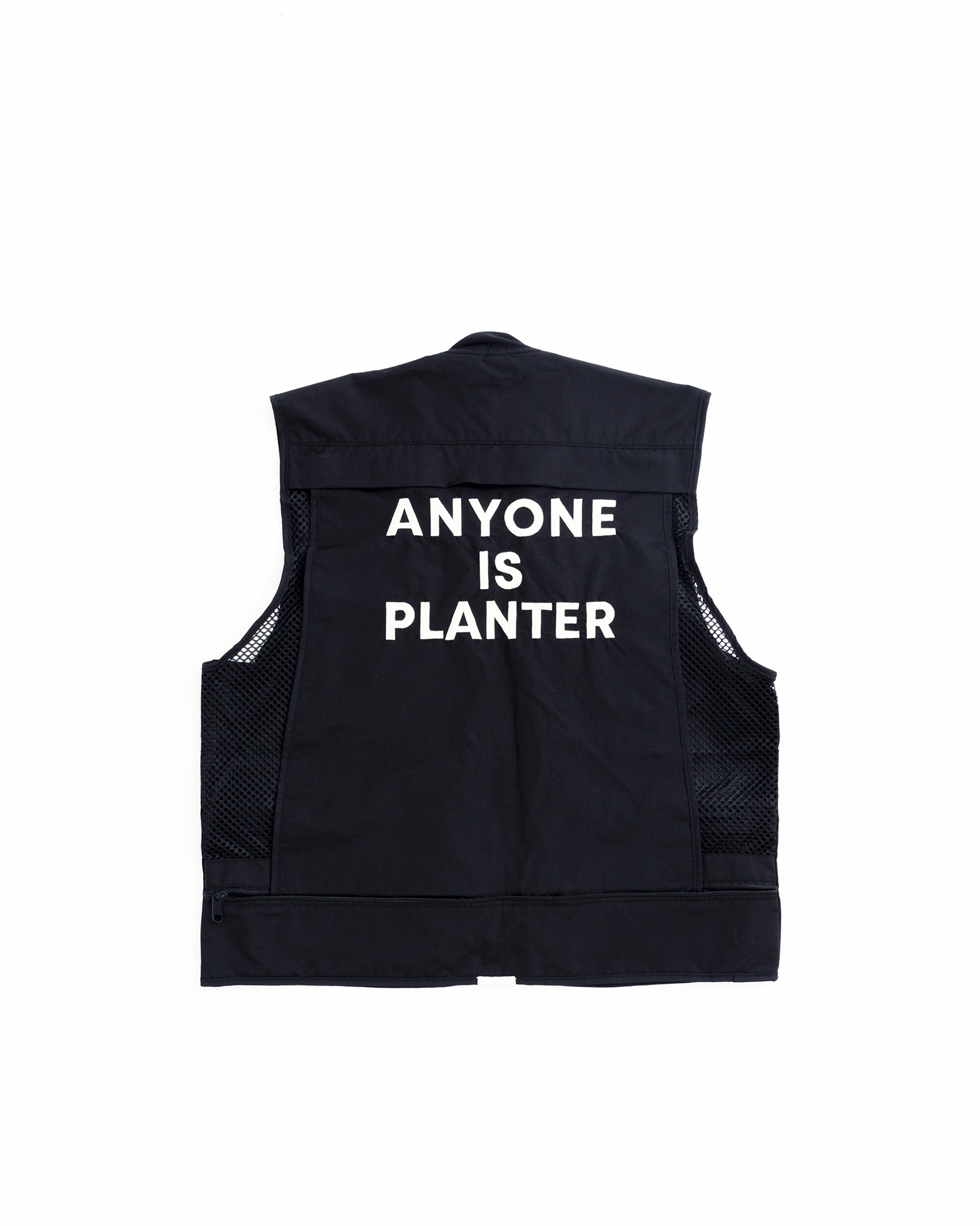 任何人都是植栽者工作背心|茂 M-衣長52cm,胸圍102cm L-衣長57cm,胸圍112cm XL-衣長62cm,胸圍122cm XXL-衣長67cm,胸圍132cm 男模特176/68 L 女模特170/52 M 為盆景工作者發想出發的多口袋設計,布料使用較為薄實,透氣與快乾性兼具的布料, 自由度與機能性極佳,側邊寬袖口設計使工作時更為延展機能,繡花使用大面積,高針數高密度刺繡方式,運用刺繡針織特性,在字體中呈現筆畫,讓刺繡中細節滿滿,可水洗不易變形 。 Designed with the needs of bonsai workers in mind, this garment features multiple pockets and is made from a lightweight, breathable, and quick-drying fabric. Its design offers excellent freedom of movement and functionality, with wide sleeve cuffs for added flexibility during work. The embroidery covers a large area, with a high stitch count and density, showcasing the details of the design strokes in the lettering. This embroidery technique takes advantage of the unique characteristics of embroidery needles and knitting, ensuring that the details are prominent and resistant to deformation after washing.